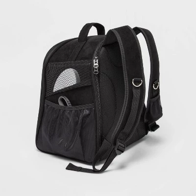 Keep your furry companion cool and comfortable during long walks with this Backpack Carrier from Boots & Barkley™. Featuring a plastic construction with a padded bottom, this backpack carrier bag helps your pet stay comfortable and contained as you transport them. The top zipper closure provides you with easy access to them, while a side pocket holds your important pet travel needs. Designed with a plastic dome to keep their curiosity engaged, it features a padded, adjustable shoulder strap and top handle for easy carrying.