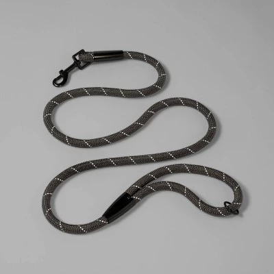 The Reflective Rope Dog Leash from Boots & Barkley™ is equally perfect for taking your four-legged friend for daily neighborhood strolls and strenuous hikes alike. Sporting a classic and durable braided rope design with chic details, this gray dog leash is woven with reflective thread that allows your pooch to stay visible even in low-light environments. It has a five-foot length to provide plenty of room for movement while maintaining control. This functional pet accessory features a loop handle for a comfortable grip, a tiny ring for attaching your keys and pet bag dispenser, along with a clip-in clasp that securely fastens to the dog collar or harness to make time spent outdoors with your furry friend even more enjoyable and fun.