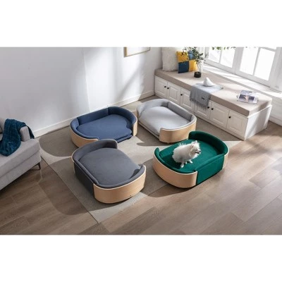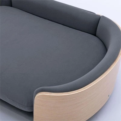 - This pet bed is supported by a beautifully turned wood frame that offers an attractive look and durable structure