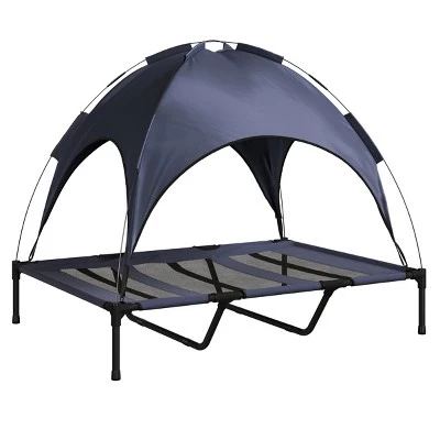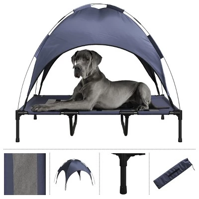 - RAISED DOG BED WITH CANOPY – The XL dog bed offers ventilation through its mesh panel and temperature regulation for your pet, as it keeps them off the ground. It also features a canopy for full shade and protection from hot or inclement weather.