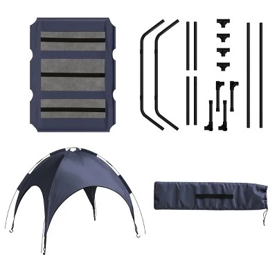 The Elevated Cat Bed by PETMAKER is a comfortable and practical sleeping solution for your furry friend. Weather-resistant and perfect for both indoor and outdoor use, this cooling dog bed provides excellent ventilation and body temperature regulation for your pet, helping them stay relaxed and happy even in hot or cold temperatures. The dog beds come equipped with a canopy for full shade and protection in hot or inclement weather. This lightweight and portable outdoor dog bed comes with a carrying case, sets up, and breaks down in minutes so your pet can rest wherever your travels may take them.