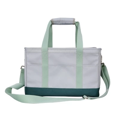 - Features an adjustable shoulder strap and double tote handles