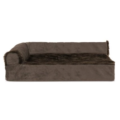 Pamper your pet with a new FurHaven Deluxe Chaise Lounge! A luxuriously soft plush sleep surface is complemented by velvet covered bolsters and gusset. Ultra plush faux fur provides a snuggly soft sleep surface and trims the edges of the bolster for a chic flair. The L-shaped bolsters support your pet’s back and hips, providing additional support. The L-shape also provides the perfect nook for pets that like to nest into comfort. The two raised, rounded bolster ends allow your pet to lay their paws or neck on the pillowed edge, helping to align the neck and spine. An orthopedic foam base features egg-crate foam that alleviates aching joints and provides soothing comfort to pressure points. The Jumbo Plus option, for larger breeds, features solid slab orthopedic foam for greater support and comfort. The zippered cover is easily removed and machine washable for your convenience. Available in five convenient sizes and four rich color options so your pet can sprawl and lounge the day in maximum comfort and style. Diverse sizing offers the purrfect cat bed or dog bed for your home!