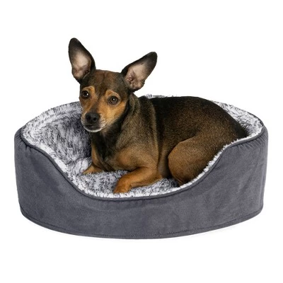 The FurHaven Two-Tone Faux Fur & Suede Oval Dog Bed is so soft, you’ll wish we made one in your size! Designed for pets who like to curl-up in comfort, this traditional-style “nest” or “cuddler” dog and cat bed features medical-grade foam walls to support hips and back. The tufted, fiber-filled insert pillow cushion is removable for more frequent and hassle-free cleaning of the sleep surface. A front cut-out makes stepping into this bed easy for smaller, older, or disabled pets. The interior faux fur lining is snuggly soft on noses and paws, while the exterior suede surface is wear-resistant and easy to clean. Designed with a waterproof-coated canvas base to protect from wet and dirty surfaces. Foam wall cover is zippered and removable for washing (machine or hand washable). The foam core is also hand washable to keep your pet’s bed smelling fresh and clean.