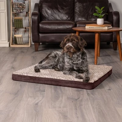 Give your best friend the support they need with a luxuriously soft FurHaven Two-Tone Faux Fur & Suede Deluxe Orthopedic Mat dog bed. Solid orthopedic foam provides your pet with extra support and cushioning for maximum comfort. This full support solid slab orthopedic foam provides even more support and comfort. Your pet will benefit from the orthopedic foam which is designed to evenly distribute weight and alleviate painful pressure on muscles and joints. Better rest for your pet can lead to improved overall health. Easy step-on mat design for smaller, older or disabled pets. The cover is zippered and removable for easy machine-washing, while the foam core is hand wash. This pet bed is ideal for bigger dogs (or smaller dogs to share) who like to sprawl & snooze the day away.