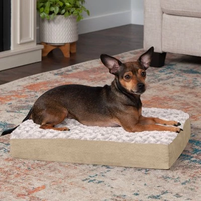 Your pet will love the rest they get on a Furhaven Ultra Plush Curly Faux Fur & Suede Mattress Dog Bed. Memory foam is designed to work with your dog’s weight and contour to their body providing better overall support and relief from painful muscles and joint discomfort. Warm and snuggly, your pet will benefit from a better, longer and more restful sleep. Better rest for your pet can lead to improved health and energy.Low profile, step-on design for easy access by older or disabled pets. Easy to clean.