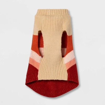 Keep your fur baby looking their best and staying warm and cozy wearing this Deep Orange and Burgundy Fuzzy Stripe Dog and Cat Sweater from Boots & Barkley™. Made from soft, cable-knit acrylic fabric for all-day comfort, this cat and dog sweater is designed in stripes of autumnal colors that pair well with other pet accessories and any fur color. Featuring a pullover style for easier dressing, this sweater makes a cute and practical addition to their accessory wardrobe.