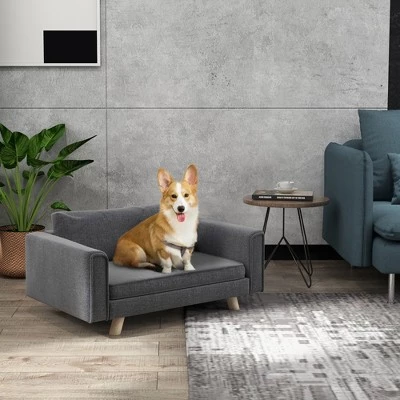- Safe and Secure: Constructed with multilayer board and pine wood legs, our couch for dogs is a strong and durable piece of furniture. Anti-slip footpads on the bottom make a dog couch bed that won’t slide around when pets use it.