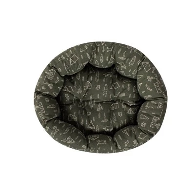 Your pet will want to snooze all day and night with this Medium Round Cuddler Pet Bed from Petshop by Fringe Studio. Made with 100% cotton canvas, this bed is durable yet soft. Overfilled bolsters with tufting and ultra-soft polyester filling help create a premier sleeping paradise your pet won’t want to leave. There’s a lower front side for easy entry and the entire pet bed is machine washable making it easy to clean. With our charming original “Camping Olive” artwork, this bed is essential to any pets home.