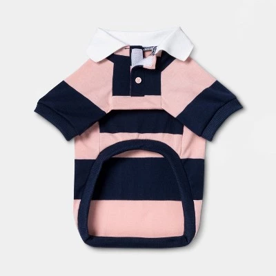 Dress your pet in a design that’s both cozy and stylish for walks and other activities with this Rugby Dog and Cat Shirt from Boots & Barkley™. This pet rugby shirt comes in sizes suitable for cats or dogs, and features a classic rugby stripe design and collared neckline for a sporty look you’ll love. The pullover fit makes it easy to dress your pet, while a convenient top cutout provides space to slip a leash through.