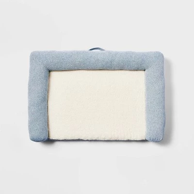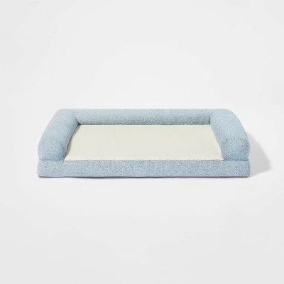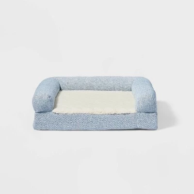 Offer your pet a comfy spot to curl up with this Sofa Bolster Dog from Boots & Barkley™. This blue sofa-style dog bed designed with raised bolster sides creates an enclosed space for your pet to sleep and rest their head. The soft foam fill provides cushioned comfort and support, while the cream interior with fuzzy sherpa-like texture offers them a soft and cozy surface to lie on. Plus, it has a removal cover with a zipper for easy cleaning, and a non-skid bottom base that prevents it from shifting and moving.