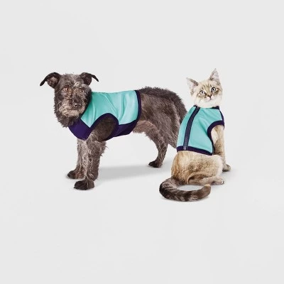 Keep your pet active in comfort during warm-weather days wearing the Spacer and Mesh with Zipper Centerback Cooling Dog and Cat Vest from Boots & Barkley™. Created for your dog or cat, this cooling vest comes in a blue color with a touch of black to help keep them looking cute whether they’re having fun at home or ready for an outdoor adventure. The vest is made with a mix of soft, stretchy fabric to help keep them comfy during all their activities. Simply put their legs through the openings in the vest and secure it with the zipper to get them ready for the day looking — and feeling — cool.